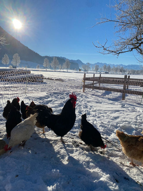Ganz zentral sind unsere Tiere. Unser Alltag dreht sich täglich um sie. Damit ist unser Vieh, unsere gemischten Hühner, die Pferde unserer Einsteller und unsere zwei Katzen gemeint.